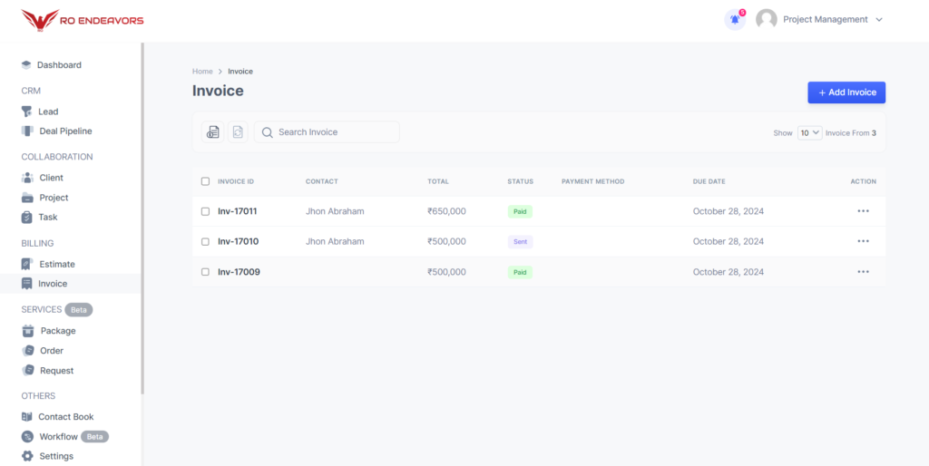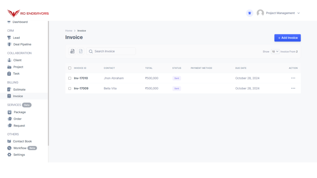 In today’s fast-paced, service-oriented world, managing client relationships and projects efficiently is key to success. Ro CRM offers a dynamic solution designed to streamline your service selling lifecycle, all while providing full customization to reflect your unique brand identity. From project inquiries to invoicing and beyond, Ro CRM helps you manage everything in one place—saving time, enhancing professionalism, and ensuring you get paid on time.