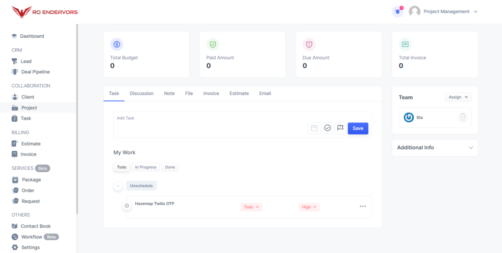 With Ro CRM, managing projects and collaborating with your team has never been easier. You can track tasks, hold discussions, and ensure that every project phase meets expectations. This feature enhances team coordination and helps deliver smooth client experiences.